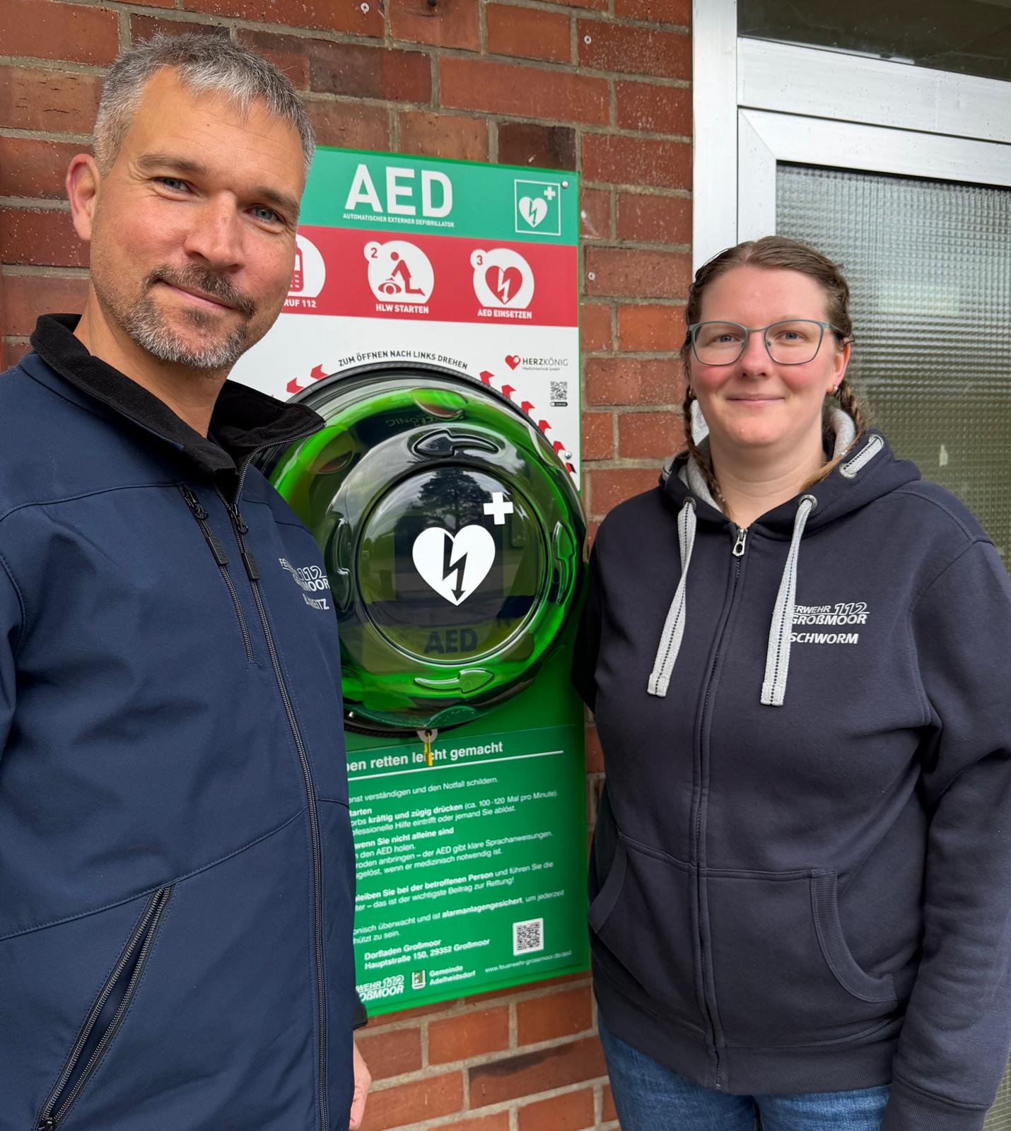 Heute wurden die letzten Hinweisschilder zu den öffentlich zugänglichen Defibrillatoren (AEDs) in der Gemeinde Adelheidsdorf montiert. Damit ist das Projekt zur Ausstattung der Gemeinde mit lebensrettenden AEDs vollständig abgeschlossen.